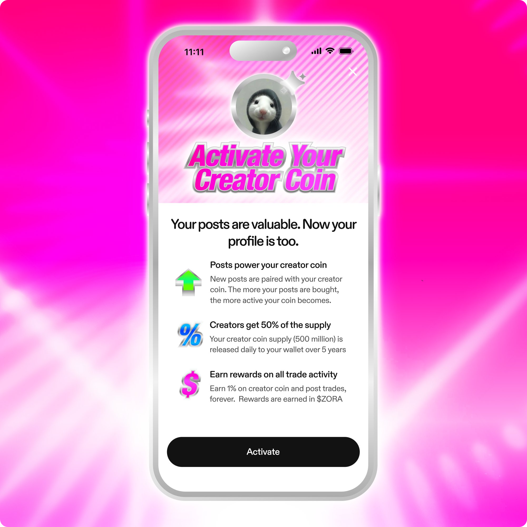 If you want to try your own Creator Coin, Zora makes it simple to get started. New users automatically receive theirs upon setting up their accounts, while existing Zora users just need to press "Activate" in their profiles.