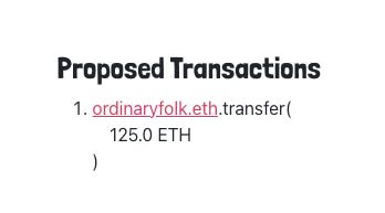 Nouns governance works by using the NFTs to vote on proposals. Every proposal must include the functionality that will be enacted if passed. Usually the proposals are for funding Nouns related projects, such as sending 125 ETH to a recipient address if passed.