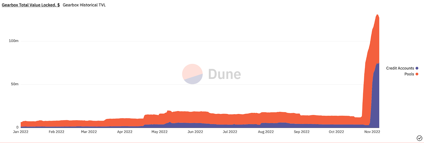 Gearbox recently launched the GEAR liquidity mining program to help bootstrap liquidity into the protocol. It’s important to note that the token is currently non-transferable and not liquid for trading. Regardless, Gearbox has seen an explosion of growth since launching its liquidity mining, where TVL has soared to north of $130M
