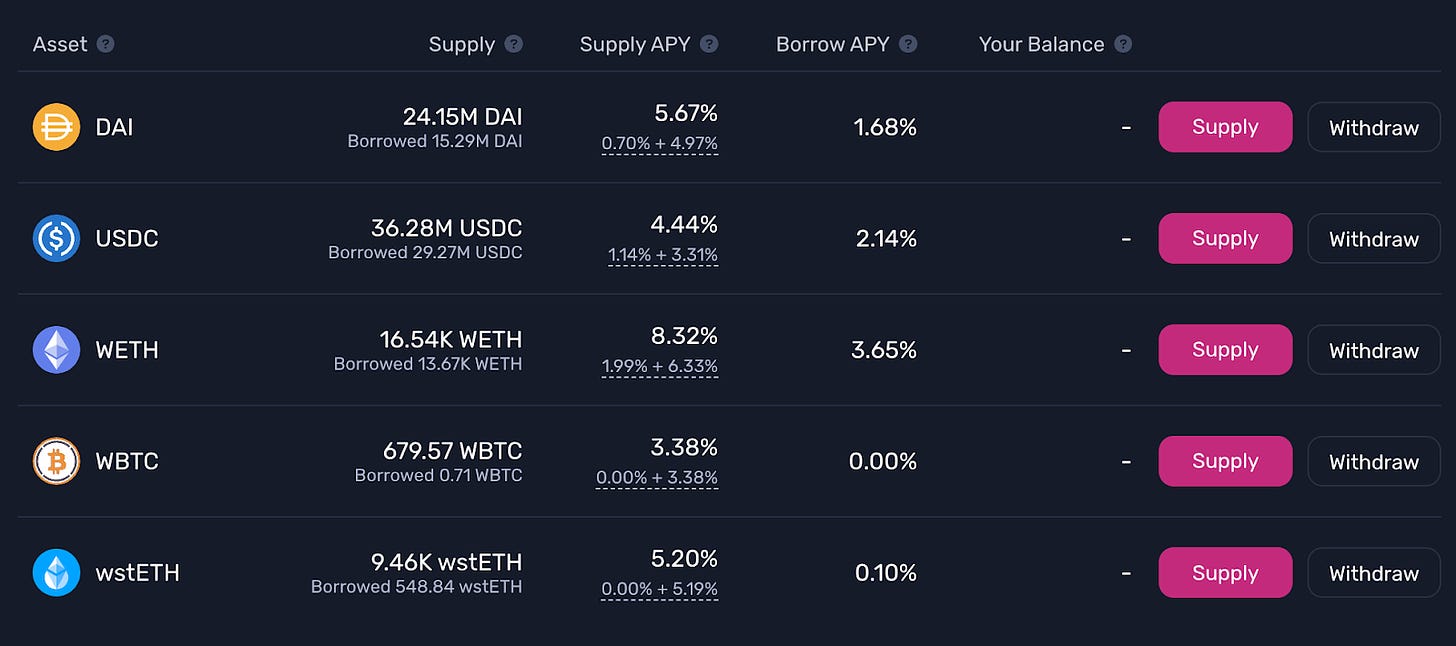 For those interested, there’s plenty of yield to be earned for those seeking a higher return than what they can find in major DeFi protocols like Aave and Compound. When factoring in GEAR rewards (valued at $200M FDV), depositors can earn up to 8.3% on ETH and 5.6% on DAI. You can also borrow DAI and USDC at fairly cheap rates.