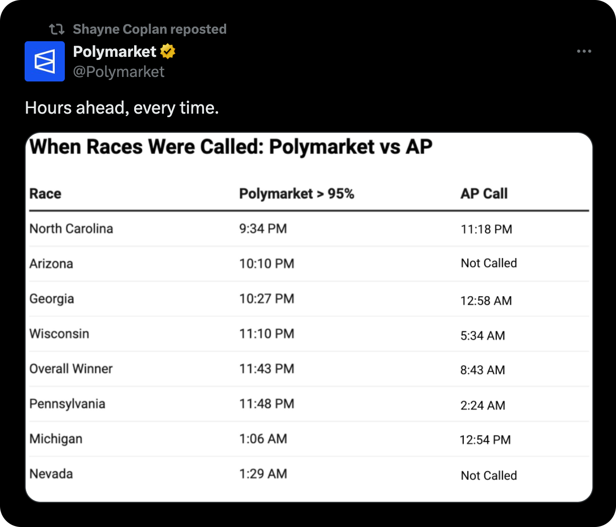Not everyone was satisfied with Polymarket’s success though. In the wake of the Trump Polymarket whale raking in $50M in profits off his bets, France announced that they had begun investigating Polymarket as an illegal gambling site. Regardless, Polymarket’s accuracy forecasting the election’s outcome stands as a strong testament to its value.