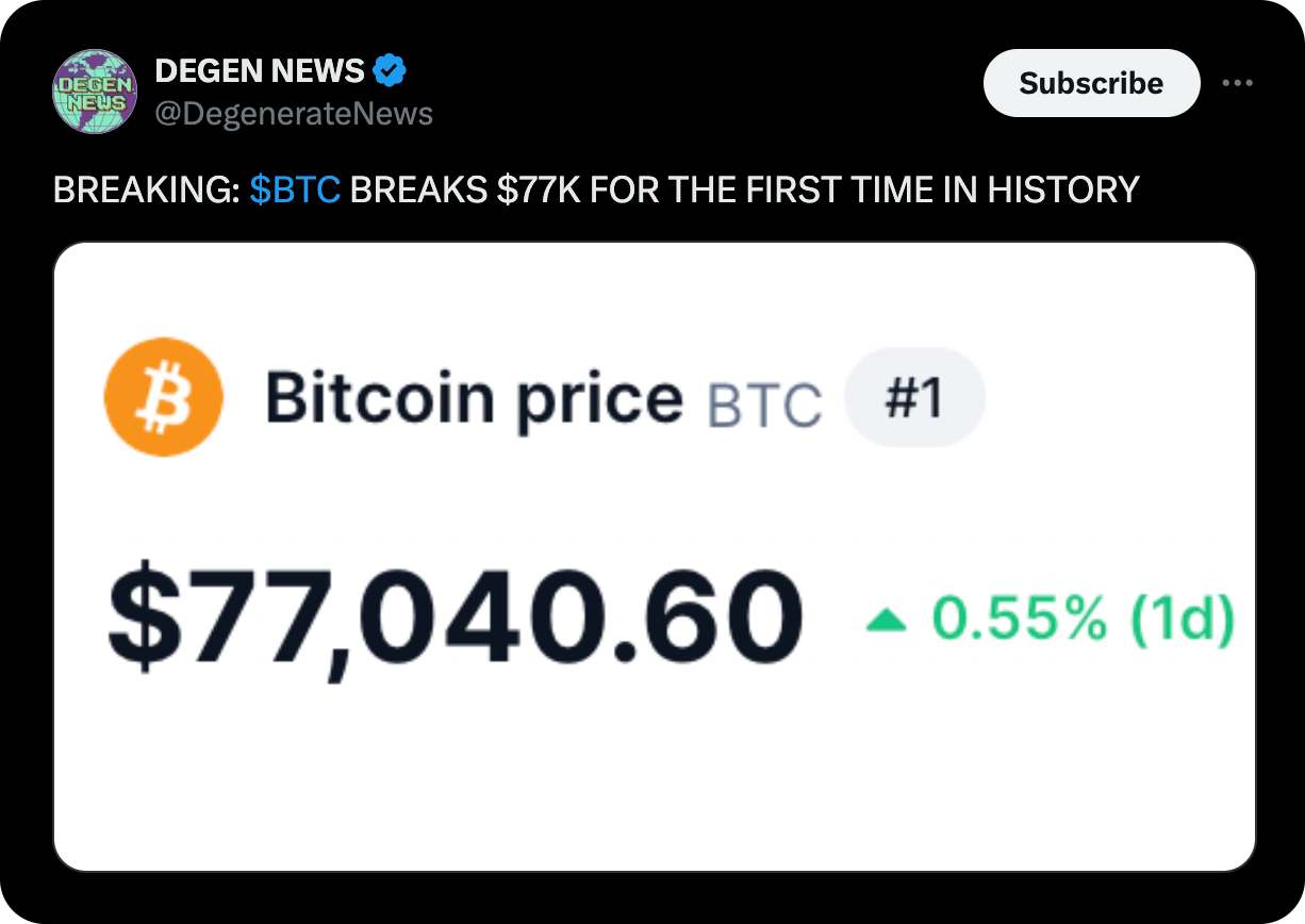 1️⃣ Bitcoin Hits Record High