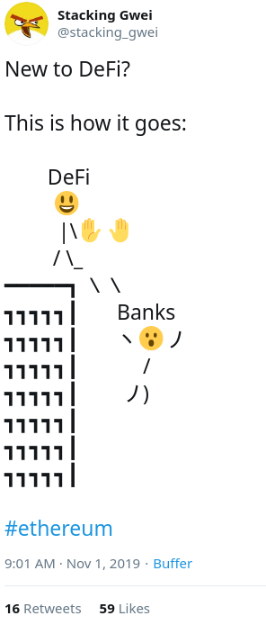 Additionally, DeFi should be open source and non-custodial: you’re the owner of your money and you’re free to use it as you want, when you want.