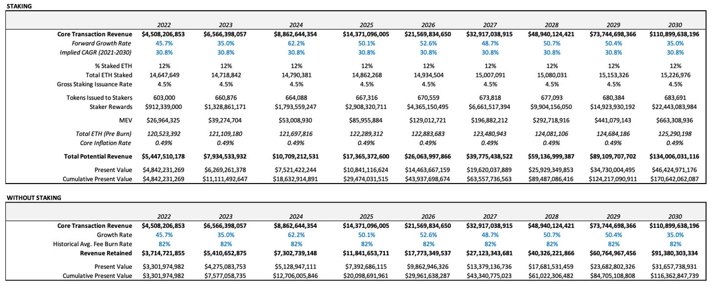 Reminder that this base case price projection is strictly based off cash flows from Ethereum’s core business of selling secure blockspace for the range of applications built on top of it.