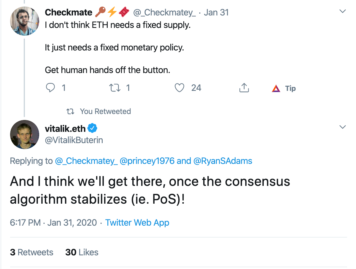 Post adapted from reddit comments made by Vitalik Buterin January 31, 2019 in response to Checkmate’s “Why ETH Won’t Sustain a Monetary Premium” Bolded headings by editor.