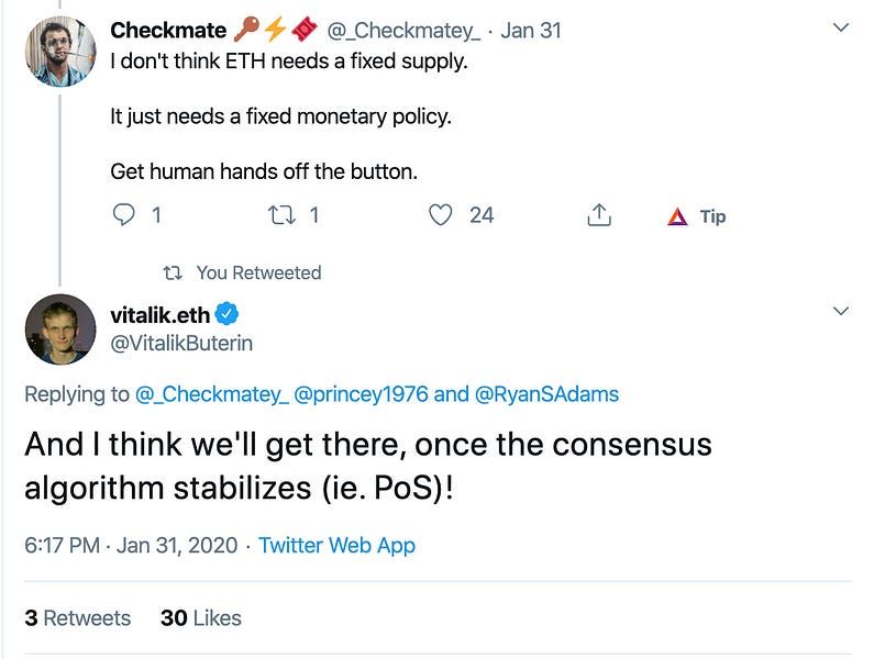 Post adapted from reddit comments made by Vitalik Buterin January 31, 2019 in response to Checkmate’s “Why ETH Won’t Sustain a Monetary Premium” Bolded headings by editor.