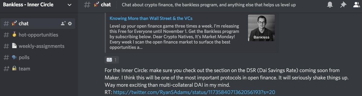 I choose Discord to host the Inner Circle (download here). I like the setup. More importantly I like the 🔥 emojis. I’m just waiting for the day someone says something worthy of 4 x fire.