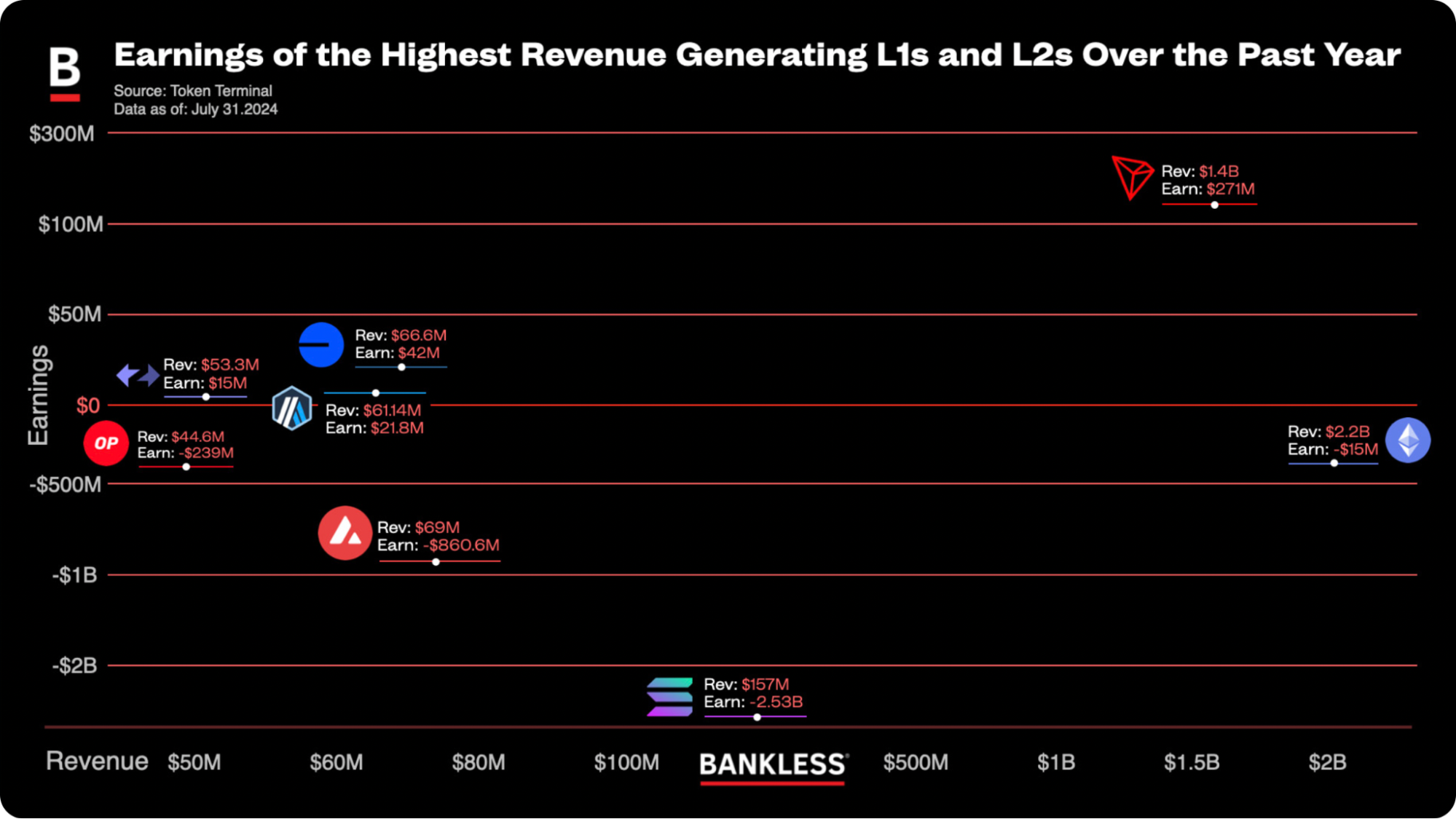 Diving deeper into the revenue and earnings of top L1s and L2s, we can get a stronger sense of the fundamental health of these networks and their place in the competitive landscape.