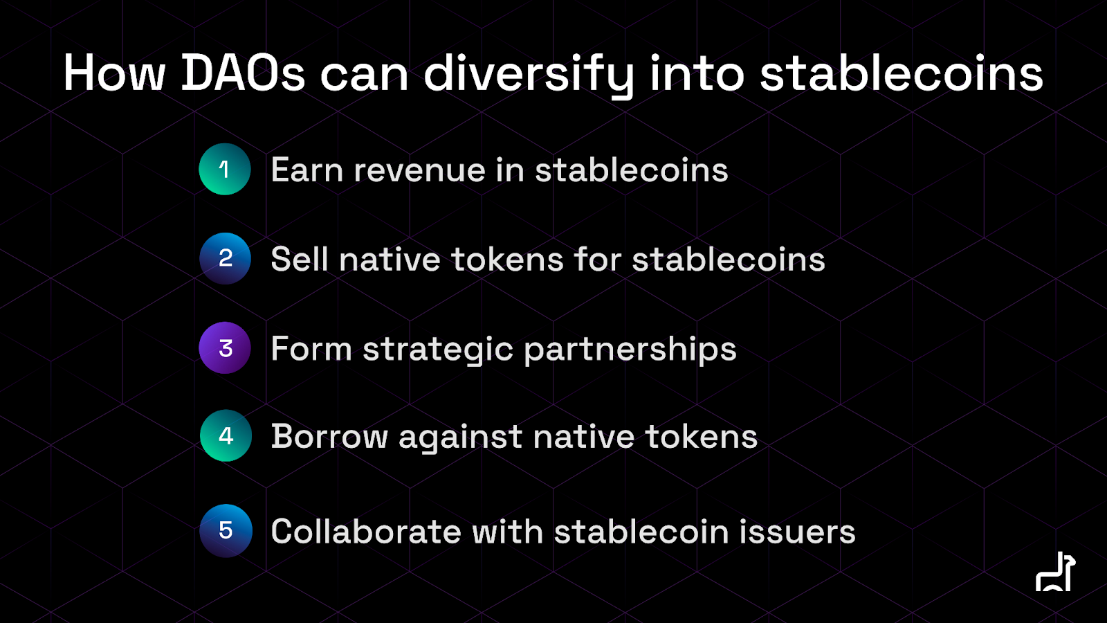 There are several ways that DAOs can accumulate stablecoins. Each of them come with trade-offs, and more DeFi-native diversification methods will continue to be built.