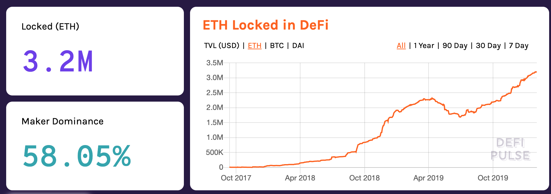 - ETH Locked in DeFi — increase ETH utility, increase ETH demand