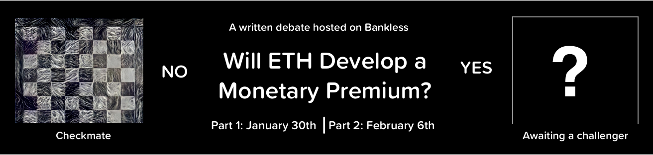 The question I put to this debate: is ETH money? Can ETH sustain its monetary premium? Will it grow or diminish?
