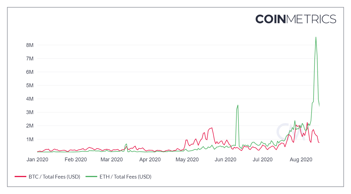 As a matter of fact, this number has recently reached all time highs as Ethereum miners were paid over $8M in fees in a single day - over 6x more than Bitcoin in the same time period.