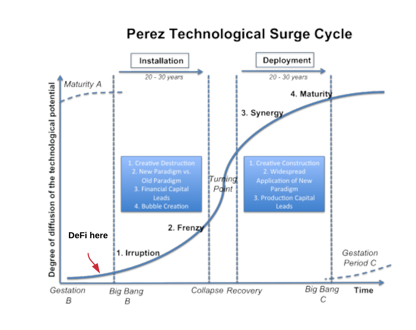 With infrastructure adoption beginning now but direct user adoption not yet here, it’s clear that the DeFi platform is still in its gestation phase on the Perez Curve. And you don’t need to be on the Midas List to figure out what comes next.