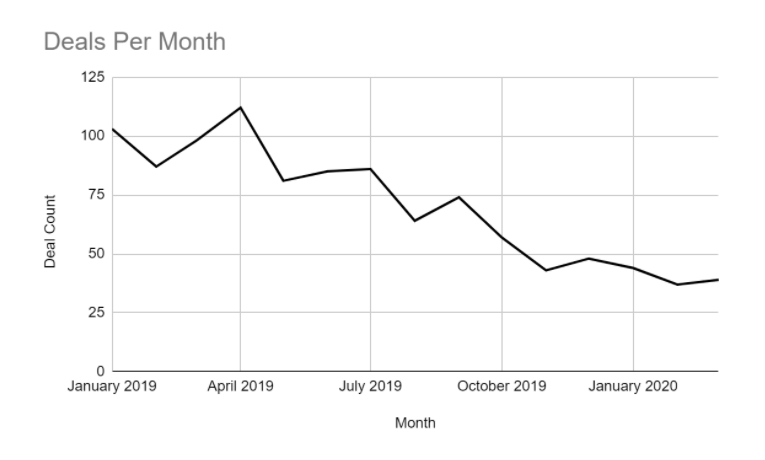 Even before COVID, early-stage blockchain venture deal volume and dollars had been falling off a cliff. From a recent analysis by Joel John (Outlier Ventures):