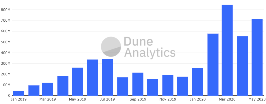 But the market isn’t waiting around for the central banks. In a critical but an early sign of product-market fit for DeFi, USD-denominated stablecoin issuance on Ethereum is up over 100% since the Covid market correction in March, a crisis largely attributed to a lack of liquidity.