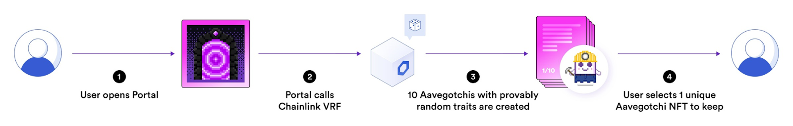 At launch, Aavegotchi’s smart contract called for randomness thousands of times on-chain to determine which Aavegotchi NFTs users received after opening “portals” (which had a limited supply of 10,000). Through this random-based gamification, users could take part in a “rarity farming meta-game” where users try to mint rare NFTs or level up existing NFTs by winning raffles and other games.