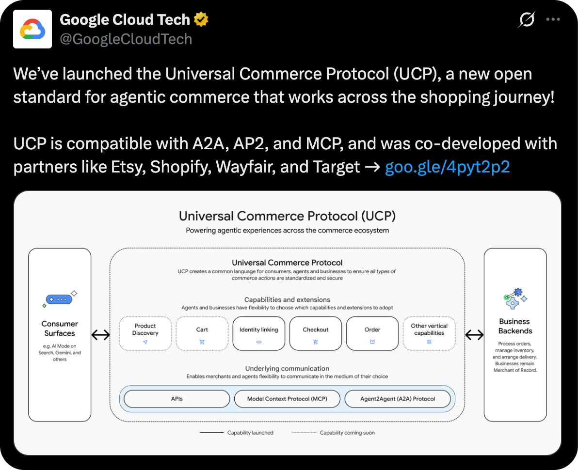On Monday, Google announced their Universal Commerce Protocol (UCP) — an open standard that gives agents a shared language for commerce.