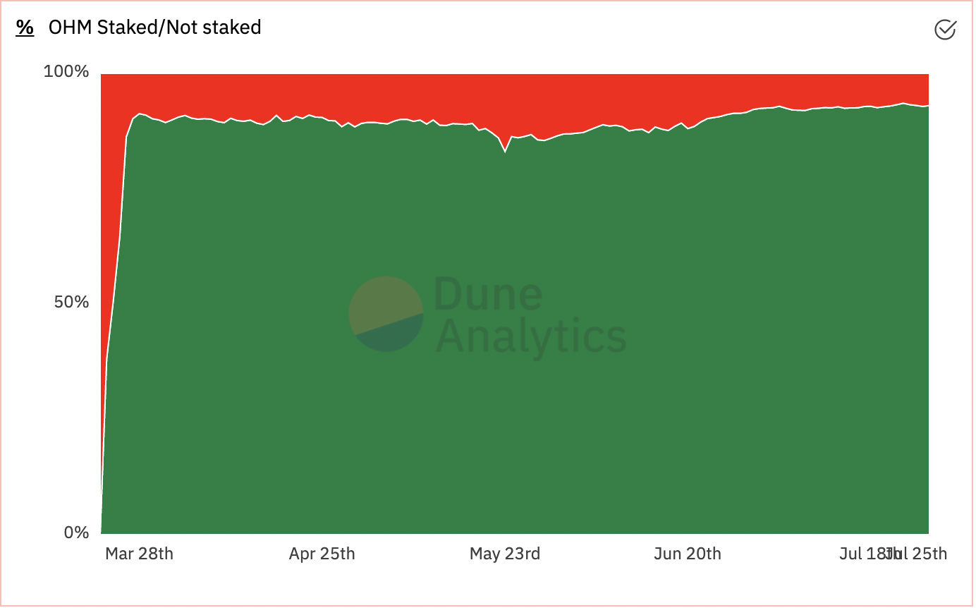 Currently, over 93% of the OHM supply is staked.