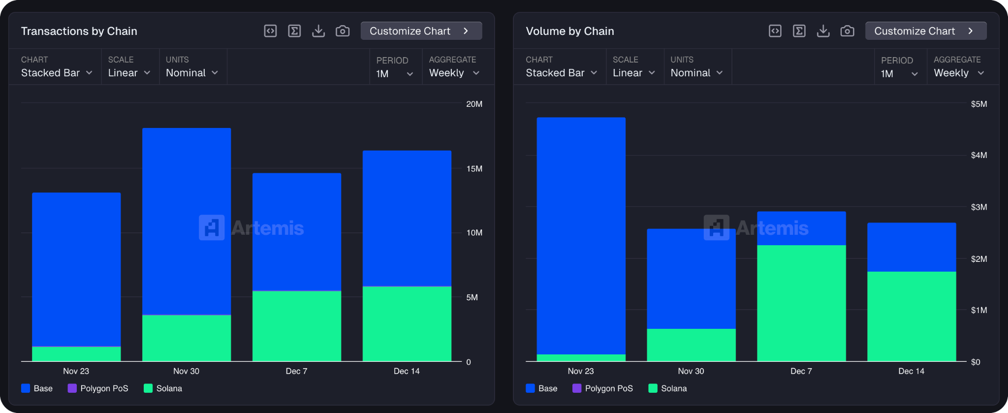For the 53% of transactions that Artemis classifies as legitimate, those come from servers offering high-frequency, low-cost services where micropayments make sense. Artemis highlights AISA, x402secure, LucyOS, AgentLisa, and Heurist as exemplars — processing millions of micropayments with near-zero artificial activity. I’ll also note that, while in October and November the vast majority of these occurred on Base — 86% of transactions and 89% of volume, to be exact — in December, activity’s migrated to Solana which processes ~36% of transactions and ~72% of volume. The services responsible for this activity are X, Y, and Z — largely agent-to-agent services.