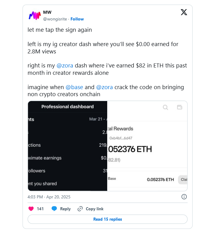 The creator economy is built on indirect revenue paths—sponsorships, ad rev shares, brand deals. Content coins offer something more direct: earn fees as your content gains traction. It’s not huge money for most users, but even small wins (e.g. $5–$50 per post) already eclipse what some people make from millions of views on Instagram or X.