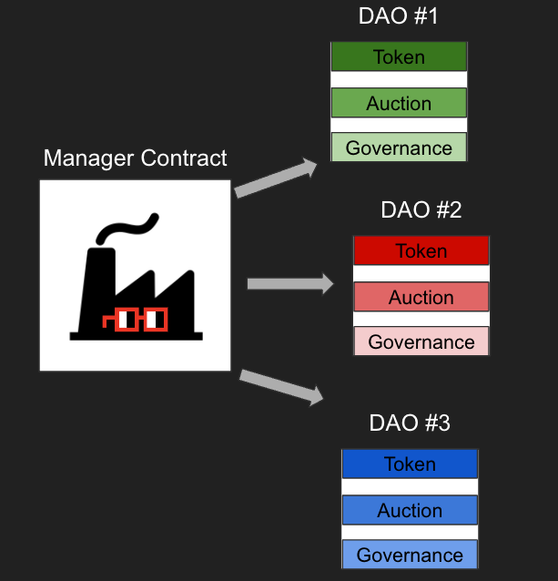 The grand idea? To proliferate the accessibility of the Nounish distribution mechanism and offer DAOs composable and upgradeable infra they can grow and maintain funds through for the long term.